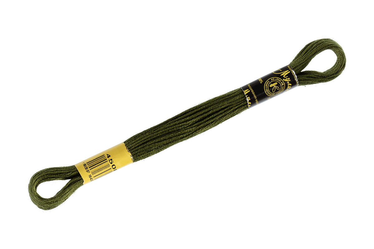 Нитки для вышивания "ПНК им. Кирова" мулине 100% мерсеризованный хлопок 8 м №4508 хаки